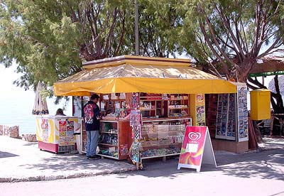 2. (Material Noun-Neuter) a small shop open at the front where light refreshment, newspaper etc. are sold. বিস্কুট, চানাচুৰ, তামোল পাণ, তেল চাবোন, বাতৰি কাকত আদি বিক্ৰী কৰা, সমুখৰ ফালে খোলা থকা সৰু দোকান৷